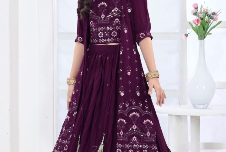 Girls One Piece Gown Gamthi Work Chiffon Fabric