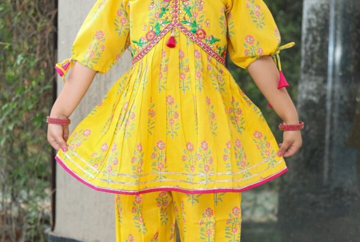 Girls One Piece Gown Sequence Work Butter Chinan Fabric