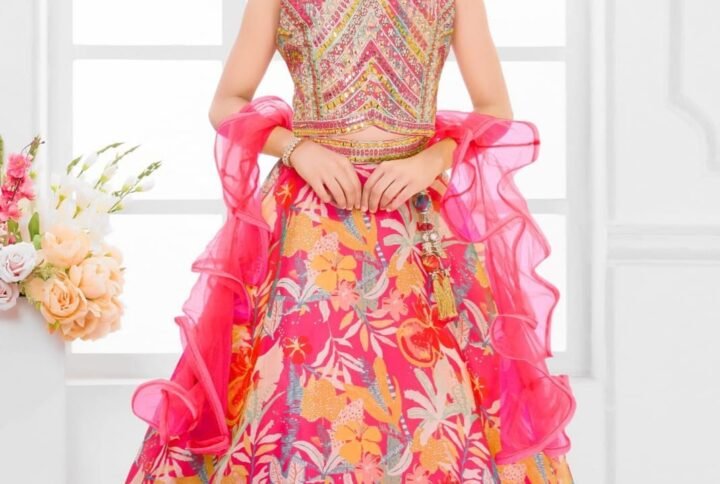 Girls One Piece Gown Sequence Work Silk Fabric
