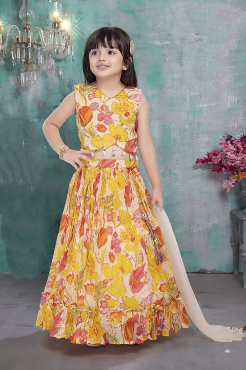 Girls Short Frock Organza Fabric Rama Colour