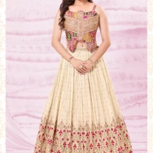 Girls Lehenga With Koti Heavy Border Zardosi Work Chiffon Fabric