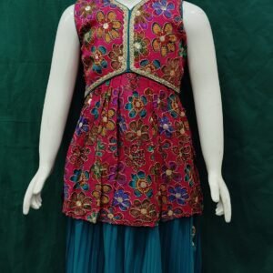 Girls Lehenga Peplom Style Embroidery Work Chiffon Fabric