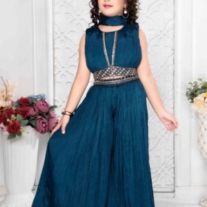 Girls Short Top With Plazo Chinon Fabric Rama Blue Colour