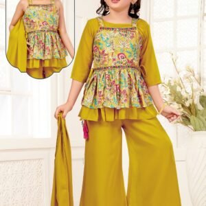 Girls Plazo Set Peplum Top Georgette Fabric With Inner