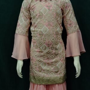 Girls Sharara Embroidery Machine Work Chiffon Fabric