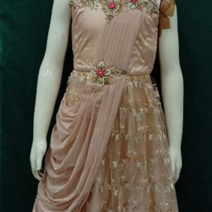 Girls Saree Gown Lakhnawi Work Soft Net Fabric