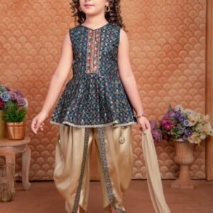 Girls Kaptan With Plaza Rion Cotton Fabric