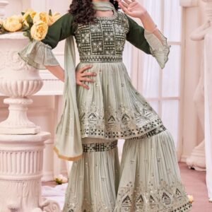 Girls Naira Cut Kardana Work Georgette Fabric