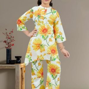 Girls White Colour Short Top Nd Pent